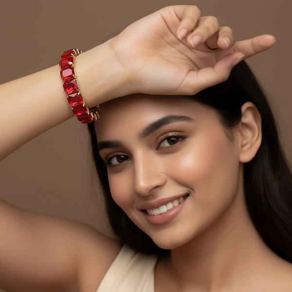 Add a touch of elegance and positivity to your look with the Anti-Tarnish Ruby Red Crystal Bracelet.