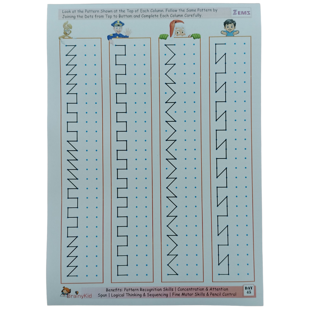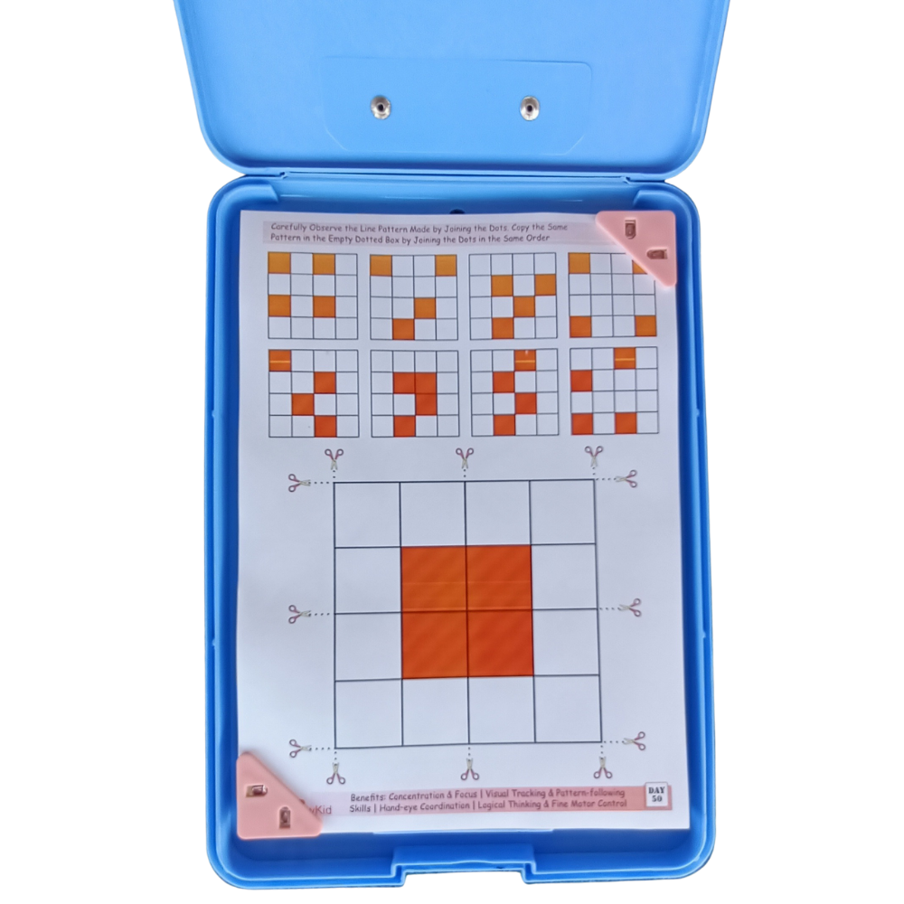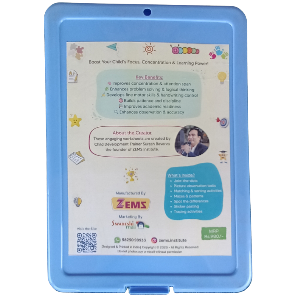 The kit includes engaging loose worksheets designed to improve observation, pattern recognition, visual tracking and fine motor coordination. Unlike regular workbooks, these reusable sheets allow children to practice multiple times, making learning more effective.